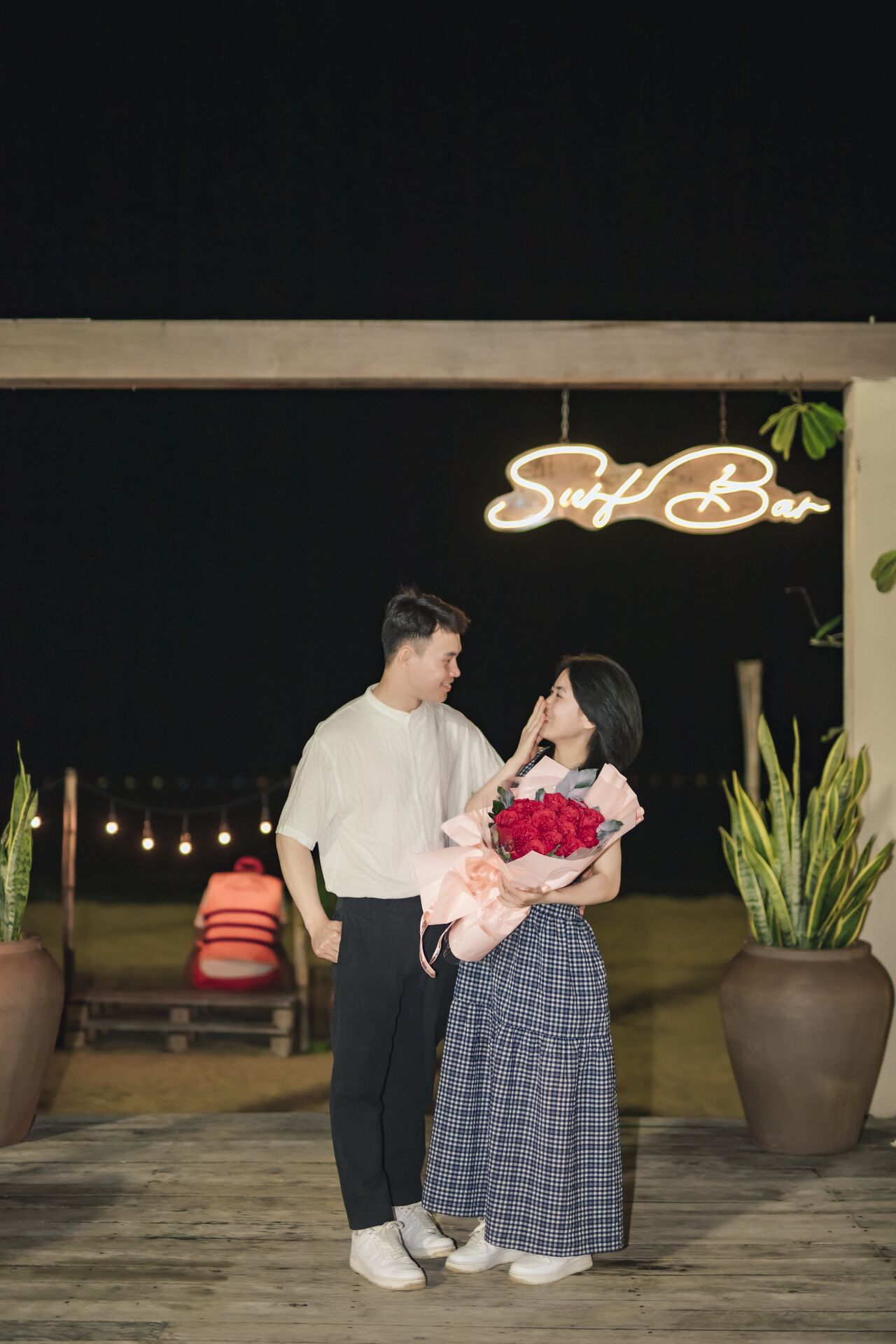 Sau hơn một năm cùng nhau đi qua những niềm vui giản dị và cả những thử thách lặng thầm, tôi nắm tay cô gái bé nhỏ của mình giữa một buổi chiều rất yên. Gió khẽ lay, nắng rơi nhẹ trên mái tóc em, và trong khoảnh khắc tim mình đủ bình tĩnh để nói lời thật lòng, tôi ngỏ lời yêu. Thu Thảo mỉm cười rạng rỡ, khẽ gật đầu – và thế là từ giây phút ấy, chúng tôi chọn ở lại trong cuộc đời của nhau.